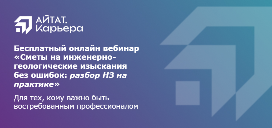 Бесплатный онлайн-вебинар от нашего партнера АЙТАТ.Карьера на тему: «Сметы на инженерно-геологические изыскания без ошибок: разбор НЗ на практике».
